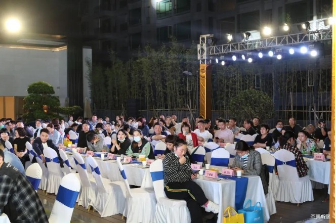 经销商晚宴当日晚6时许,以【乘“圣”跨越】为主题的,z6.com尊龙集团第45届国际家具展接待晚宴暨2020年度优秀经销商颁奖盛典,在营销中心四楼景观花园隆重举行,来自全国各地的经销商朋友欢聚一堂,共同分享一场精彩纷呈的晚宴。